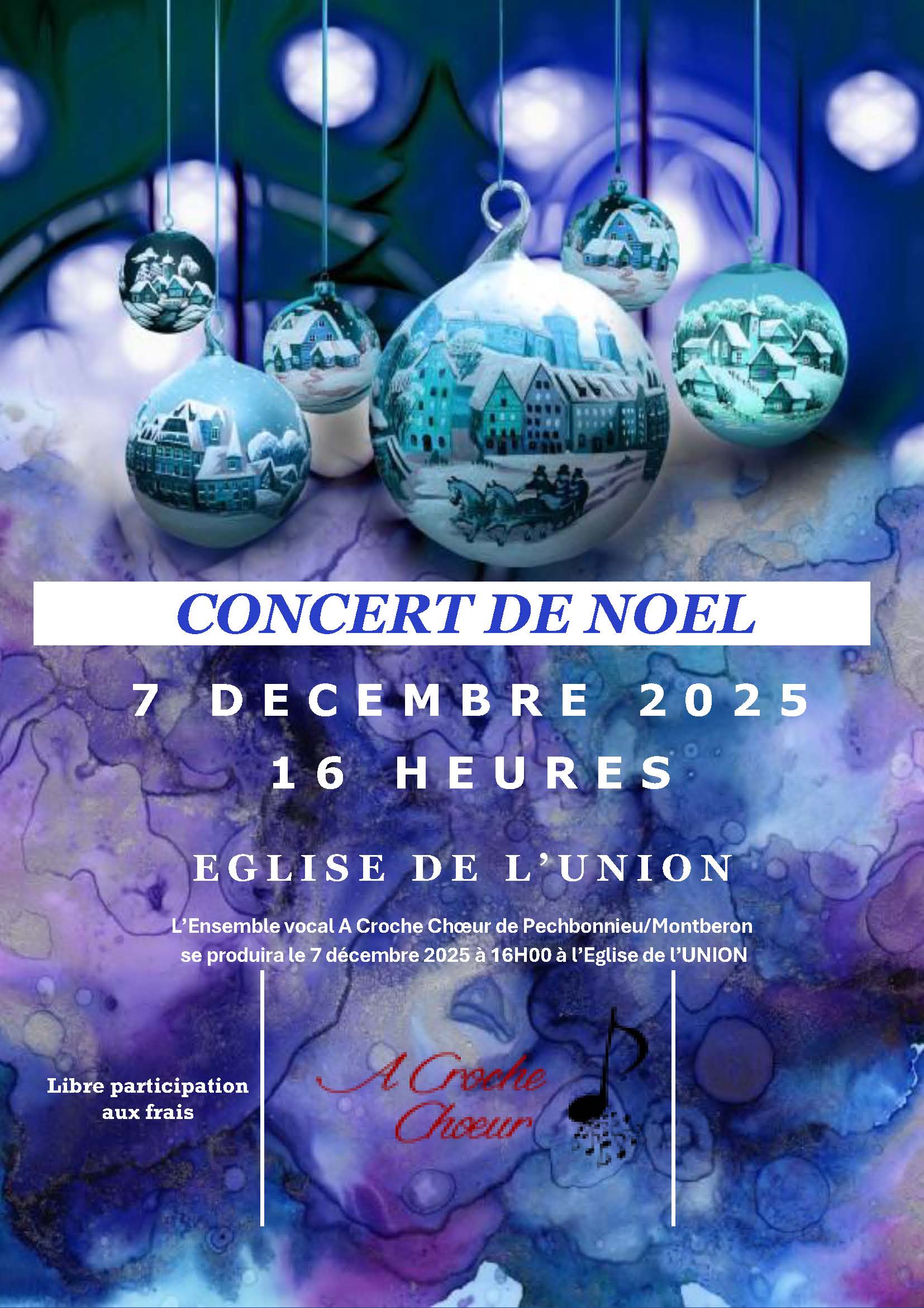 Venez nous écouter à l’Eglise de Cugnaux, le dimanche 11 décembre à 17H.